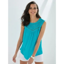 Blouse fluide manches 3/4, col tunisien, détail jour échelle sur le devant.