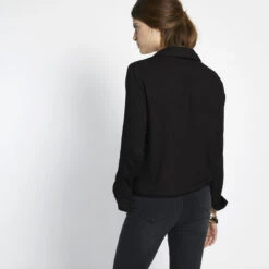 Blouse à manches longues, écru, détails en dentelle sur les épaules.