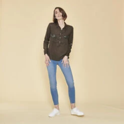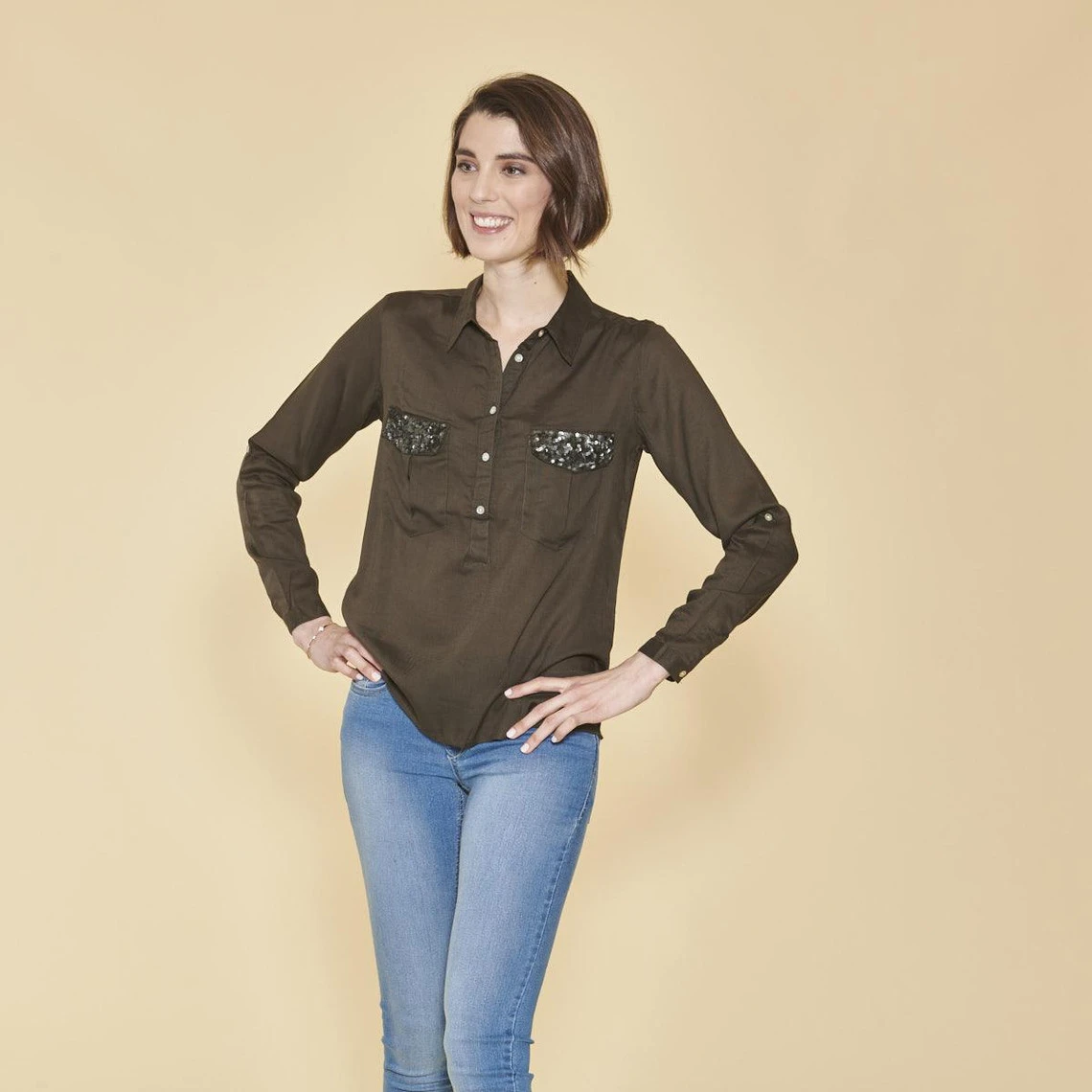 Blouse manches longues poches poitrine avec sequins femme
