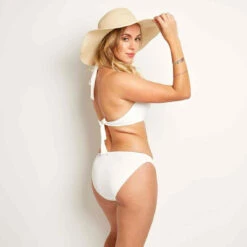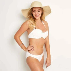 Rajoutez la Culotte de bain classique Blanche MISTRAL Brigitte Bardot à votre collection de maillot : une pièce confortable qui sublimera vos courbes avec sa superbe maille Jacquard rayée.