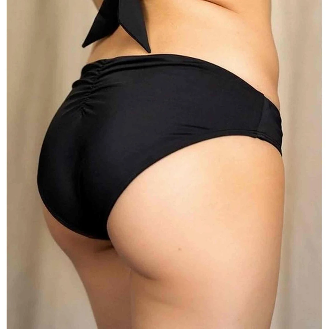 Cette Culotte de bain classique – Noire de chez Maline Bodywear se dĂ©marque par ses fronces Ă l’arrière et son tissu hyper soyeux.