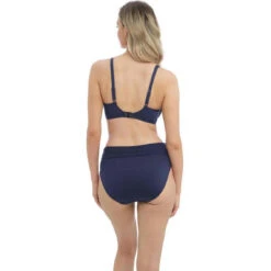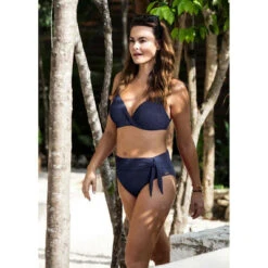 On adore la ceinture Ă rabat et la nouette au niveau de la taille de cette Culotte de bain Taille Haute Bleue OTTAWA de Fantasie Bain.