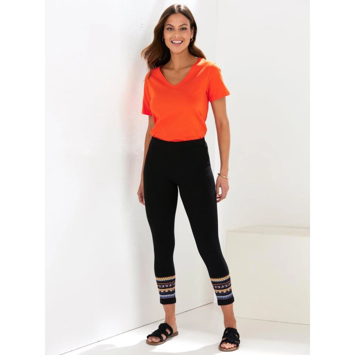 Taille élastique Maintient sans opprimer S’adapte à votre silhouette Valences imprimées sur le fond Pas de coutures latérales externes Maille élastique adaptable 95 % coton, 5 % élasthanne ong