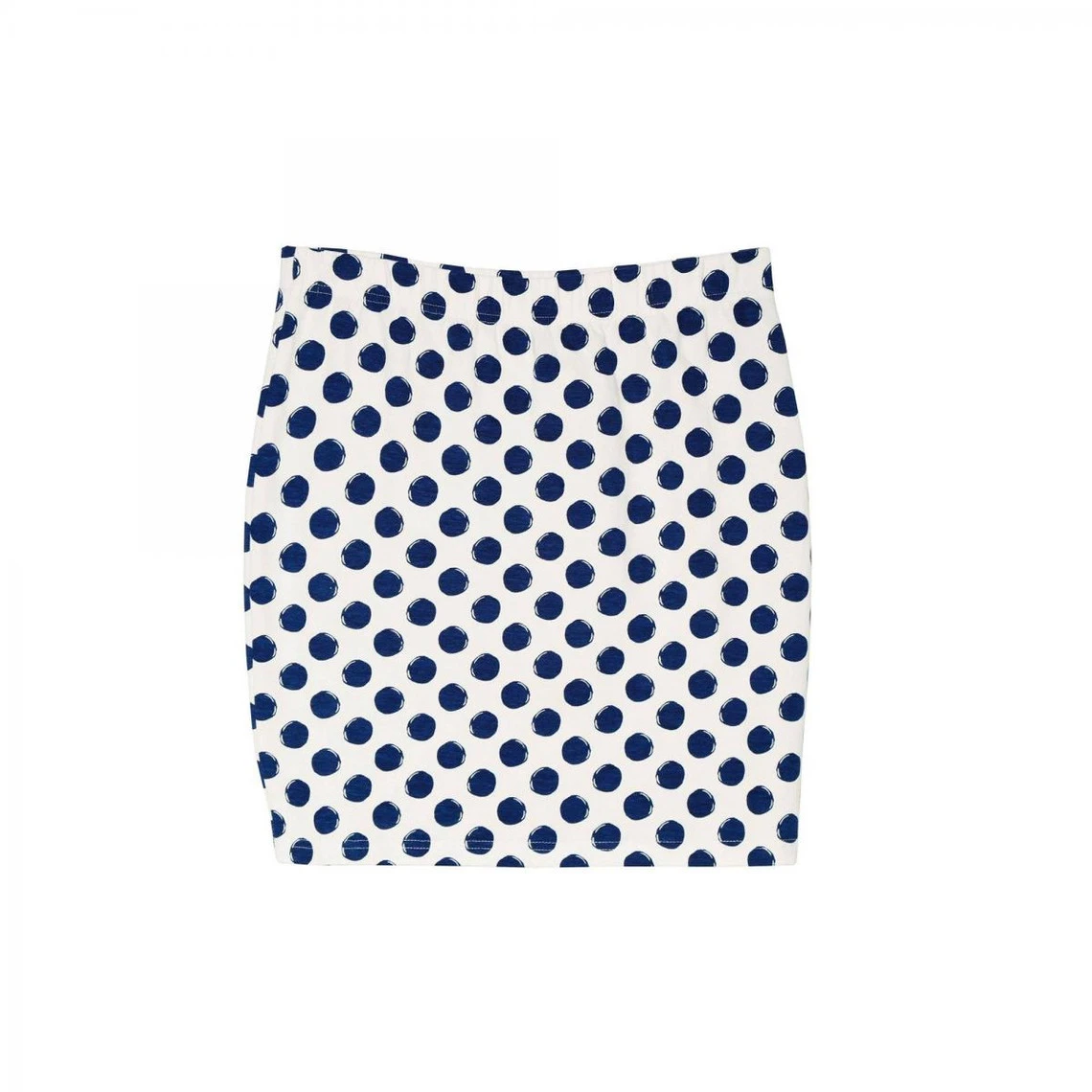 Jupe courte. Taille élastique. Imprimé à pois. Maille jersey. Longueur 42 cm environ.