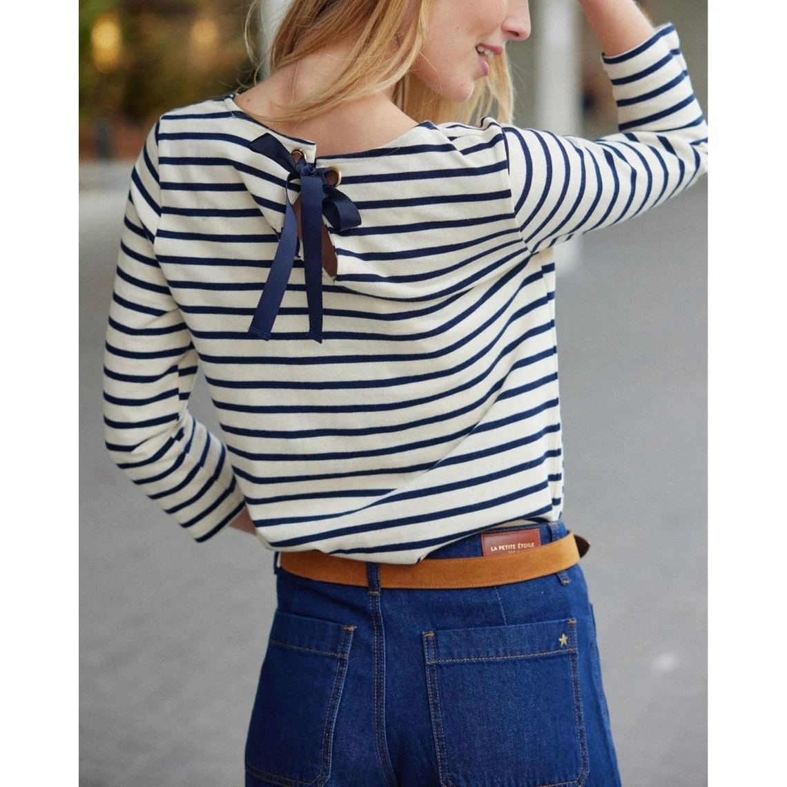 Détails : motif rayé, lien à nouer sur le col dans le dos