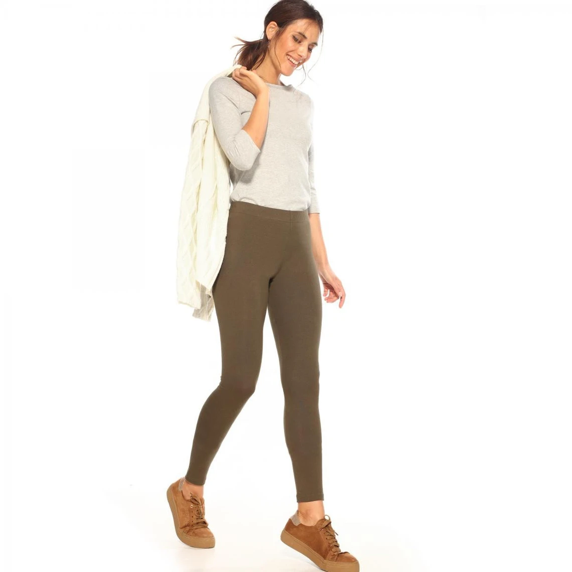 95% coton, 5% élasthanne. Gris chiné 82% coton, 13% polyester, 5% élasthanne