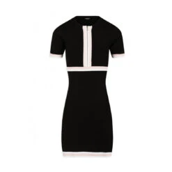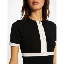 Bandes contrastantes au niveau de la fermeture, du bas de la robe, de la taille et du bas des manches