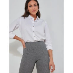 Ceinture élastique plate Maintient sans opprimer Pinces dans le dos Surpiqûres verticales sur le devant des boucles de jambe Fermeture éclair invisible en bas Tissu milano jacquard extensible 75