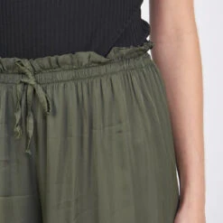Pantalon large fluide en mélange soie, élastiqué à la taille, liens de resserrage.