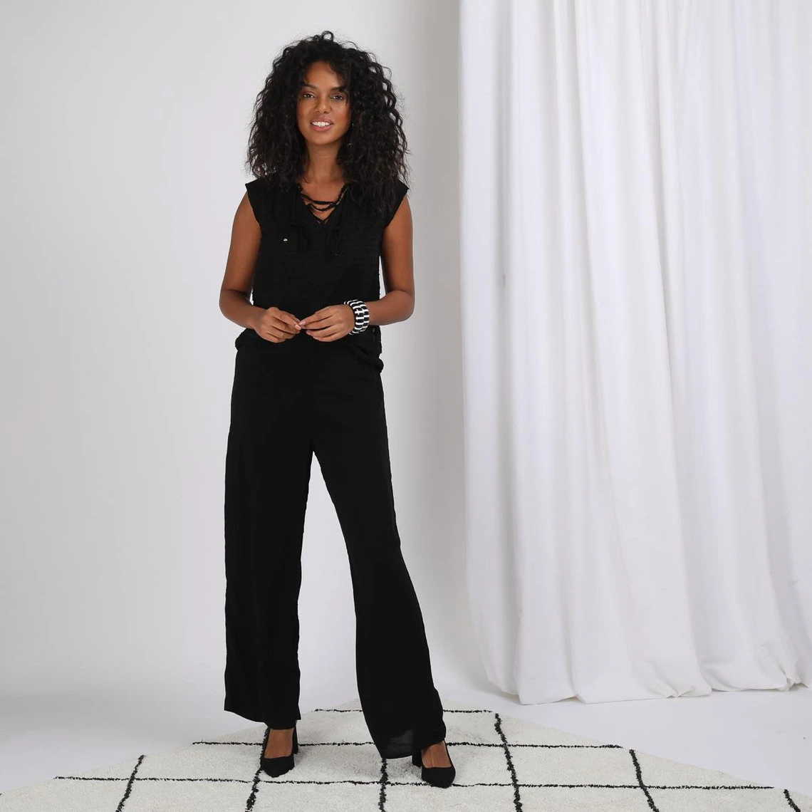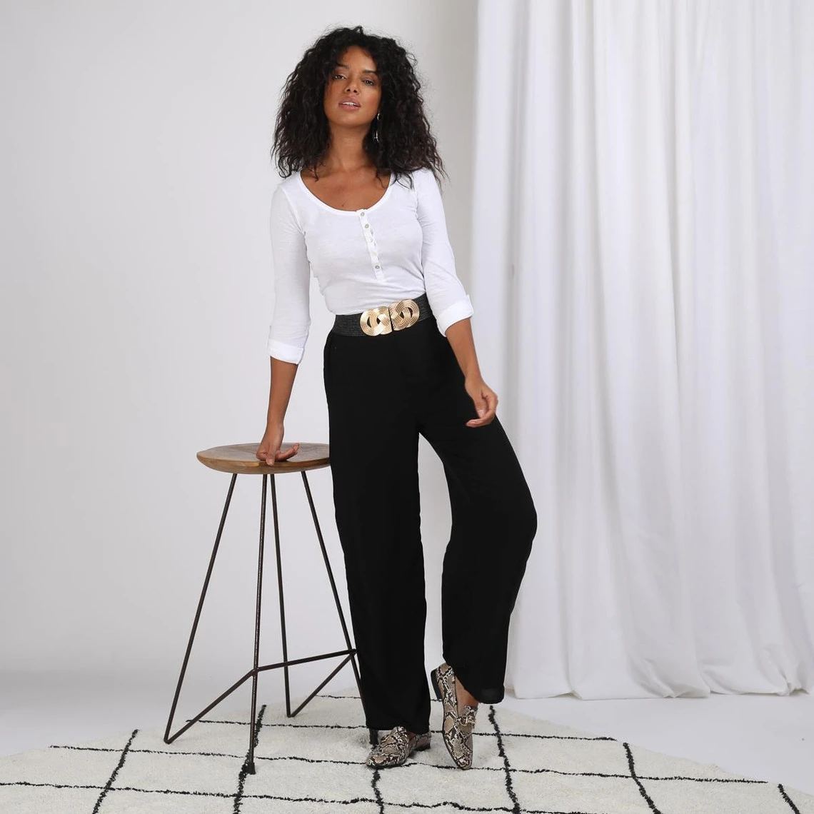 Coupe palazzo Ceinture plane devant. Élastique sur les côtés et sur le dos Jambe droite Tissu agréable à porter 100 % viscose Longueur entrejambe : 76 cm, largeur bas : 29 cm