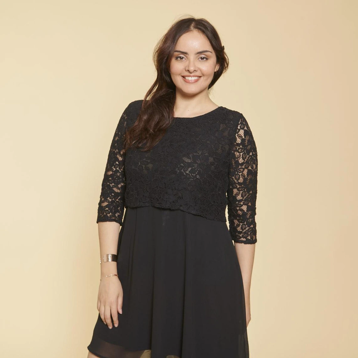 COMPOSITION, article robe courte effet 2 en 1 manches 3/4 en dentelle femme :