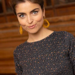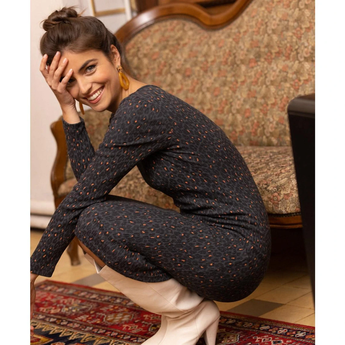 COMPOSITION, article robe mi-longue imprimée col bateau manches longues femme :
