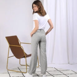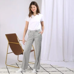 Pantalon large à carreaux, léger effet lurex argent dans le carreaux.