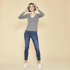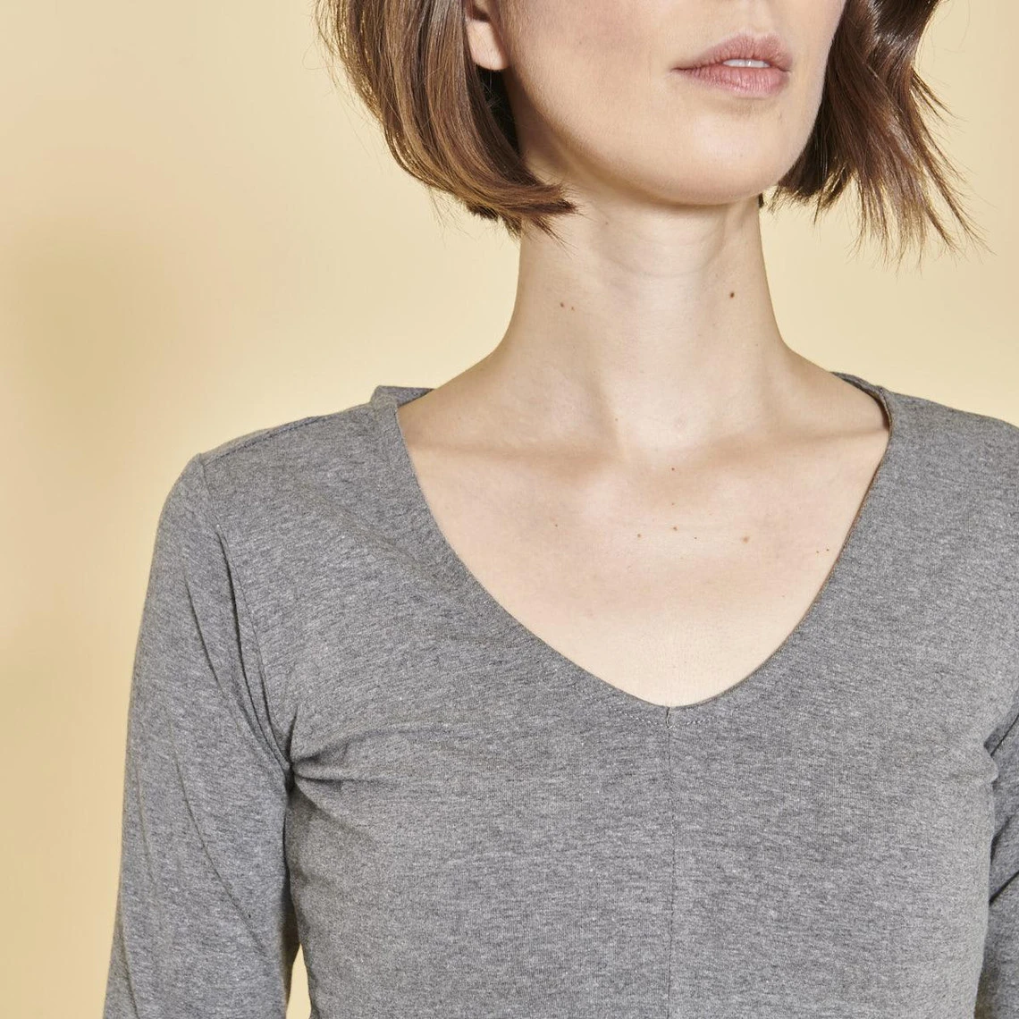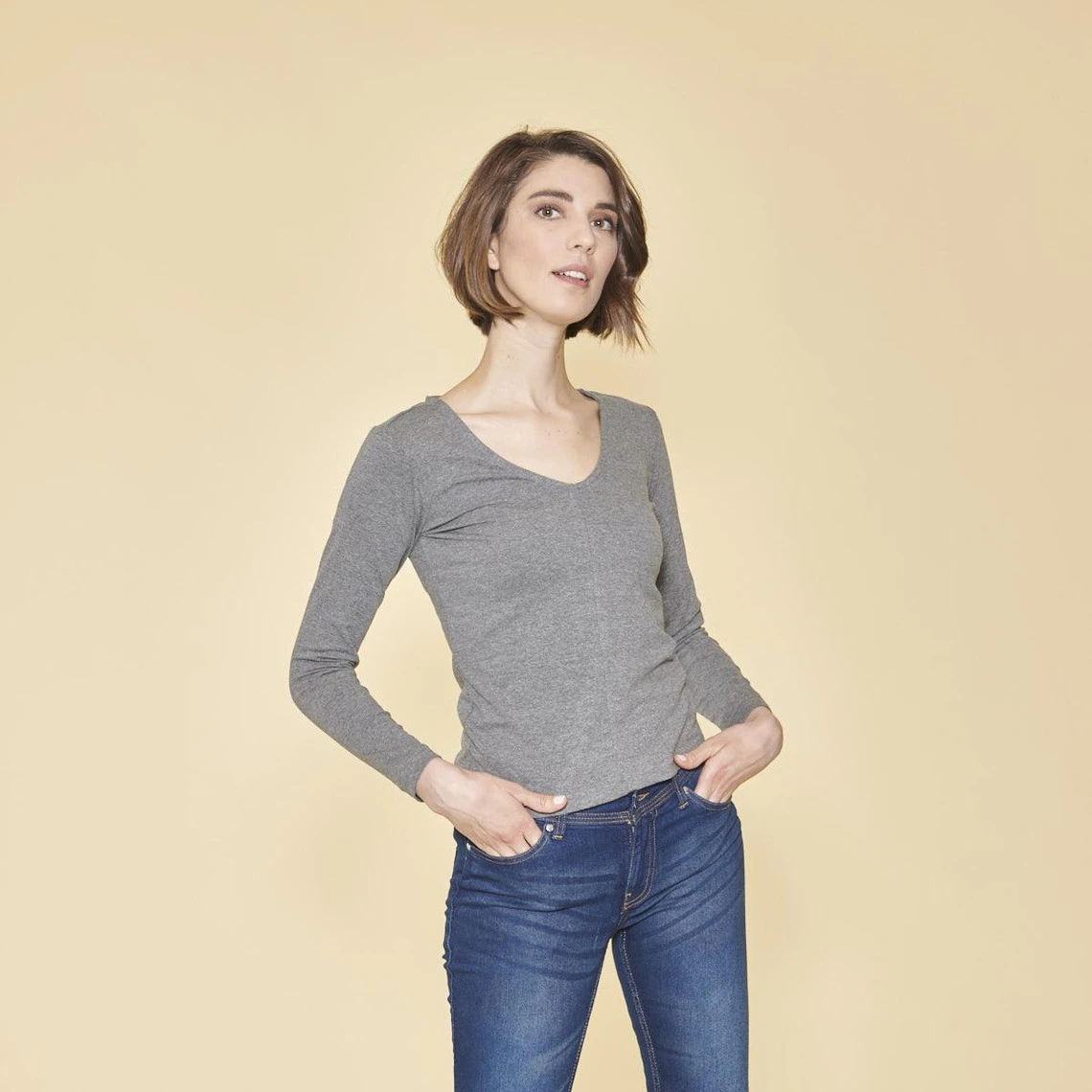 COMPOSITION, article tee-shirt manches longues col en V femme :