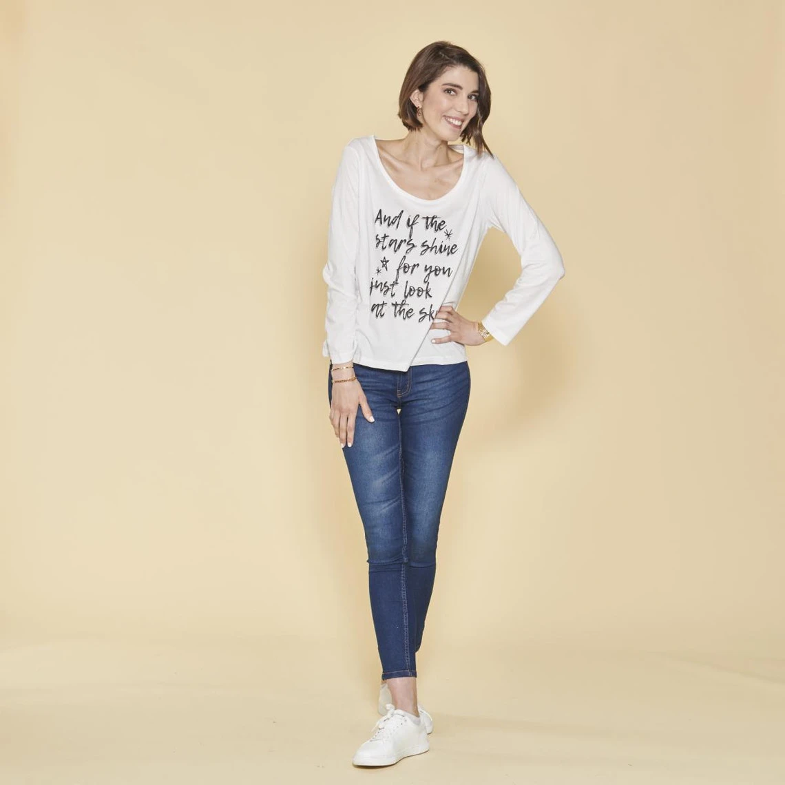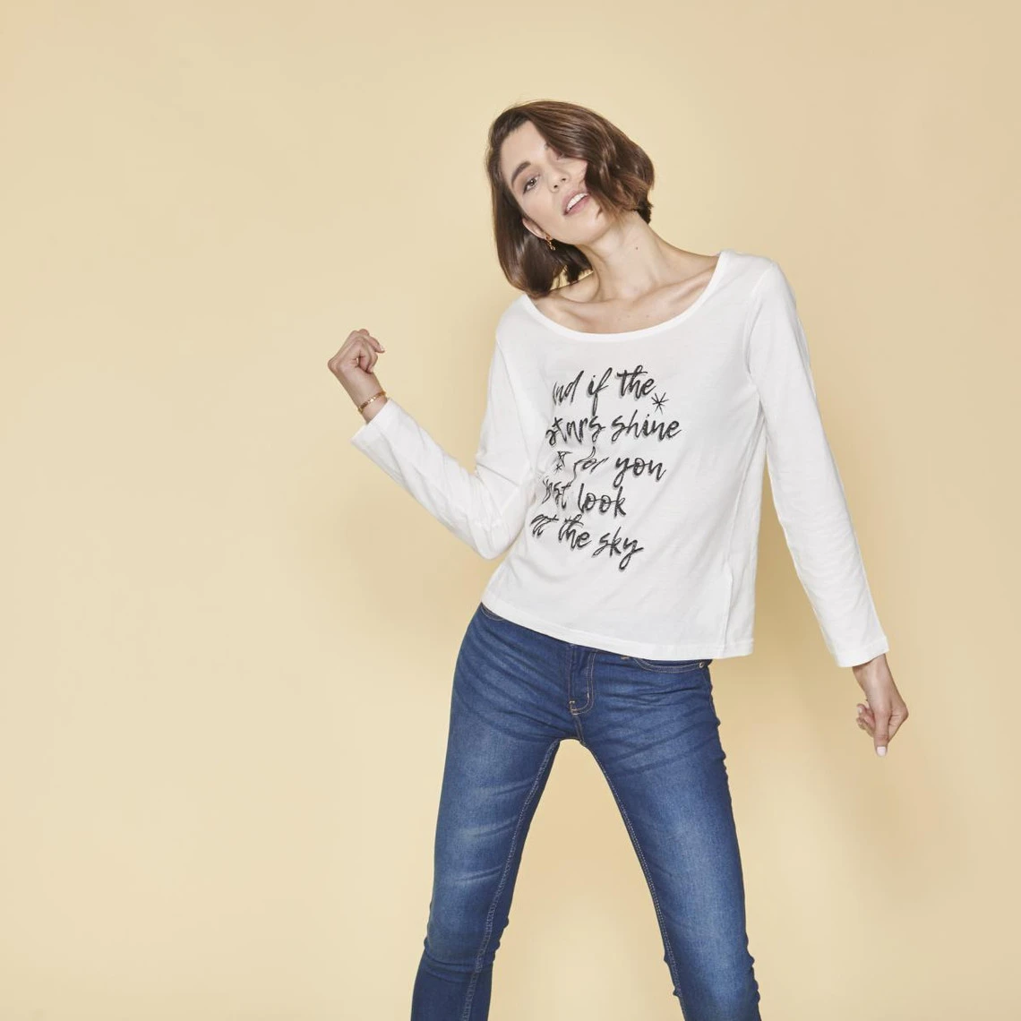 COMPOSITION, article tee-shirt manches longues message imprimé femme :
