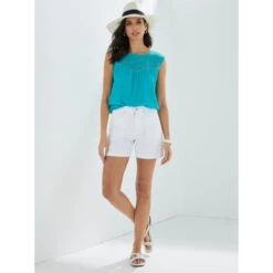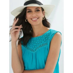 Encolure arrondie Sans manches Empiècement en guipure sur le devant et dans le dos Enchevêtrement de dentelle de coton Effet plissé qui met en valeur le buste Ouverture goutte d’eau dans le dos a